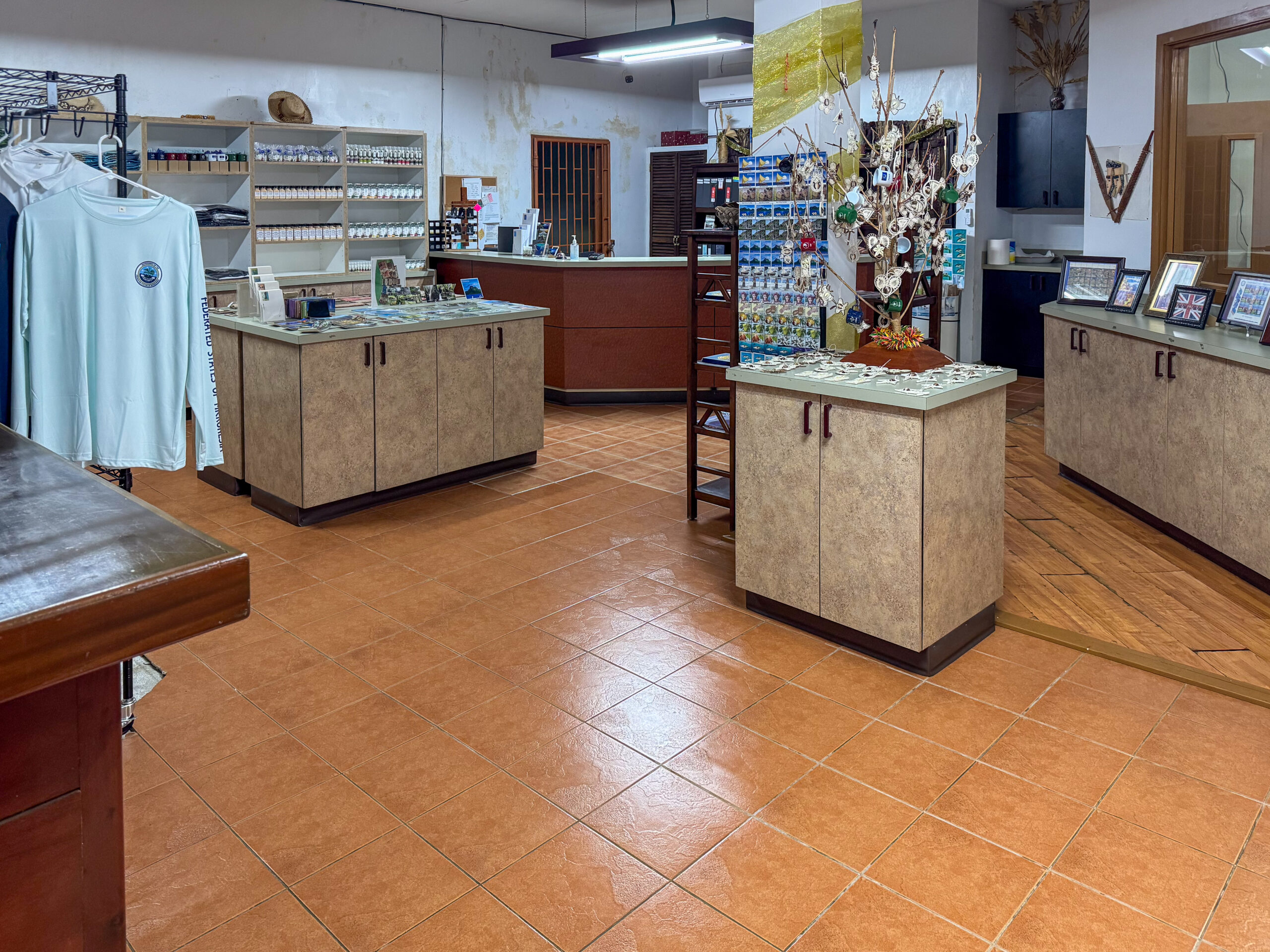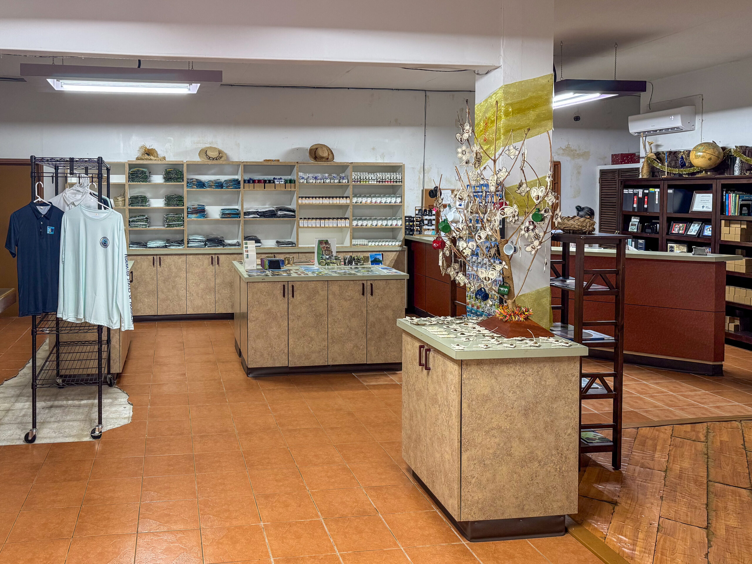 The gift shop is located behind the main post office in Kolonia and is open from 10:00 AM-12:00 PM and 1:00 PM -4:00 PM Monday-Friday. Closed Saturday and Sunday.
